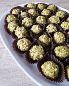 1. Pon en el vaso de la Thermomix el turrón y tritura pulsando 1 segundo al turbo. Repite la operación 2 o 3 veces hasta que el turrón quede en cachitos.